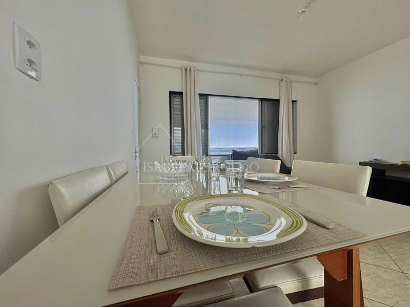 O imóvel possui 2 suítes, oferecendo mais privacidade, além de banheiro social para atender visitas. O apartamento é lateral, localizado em prédio frente mar, proporcionando excelente localização e fácil acesso à praia.